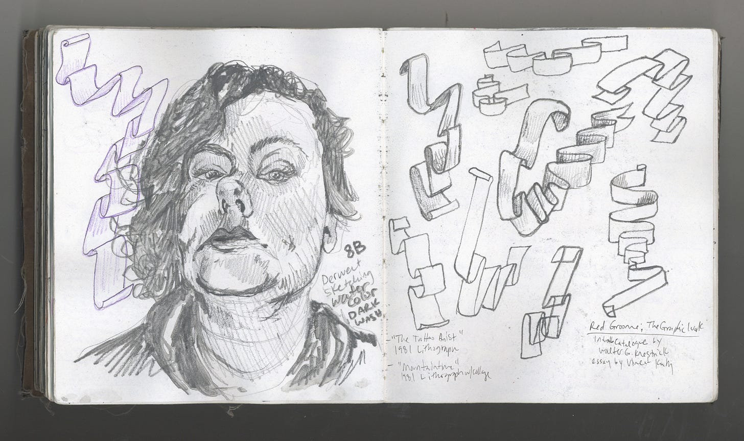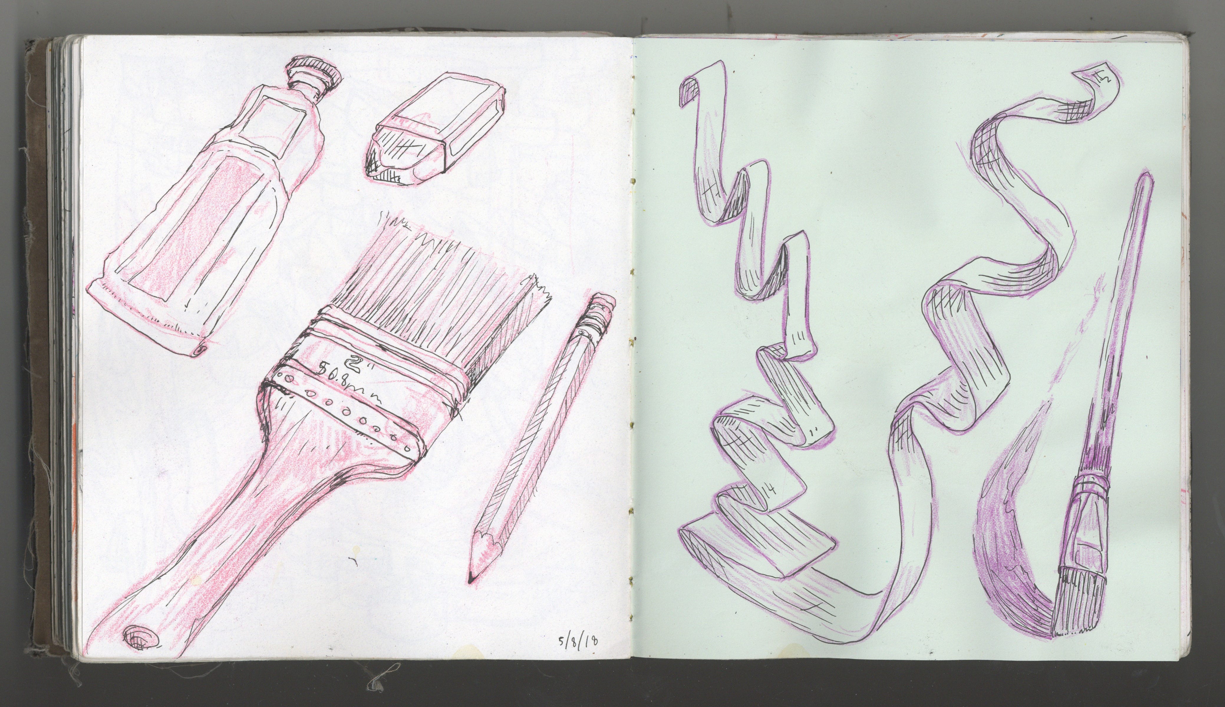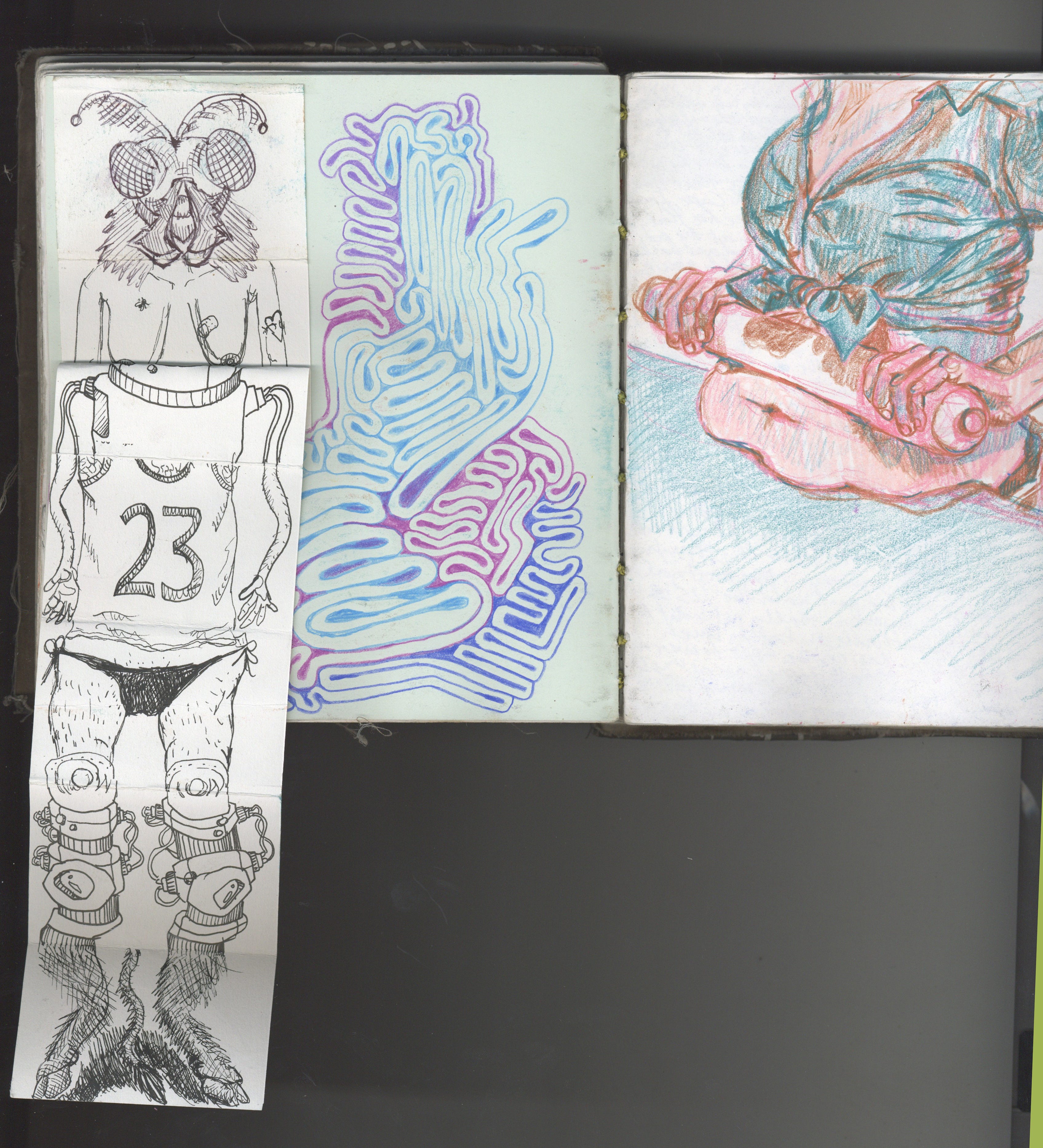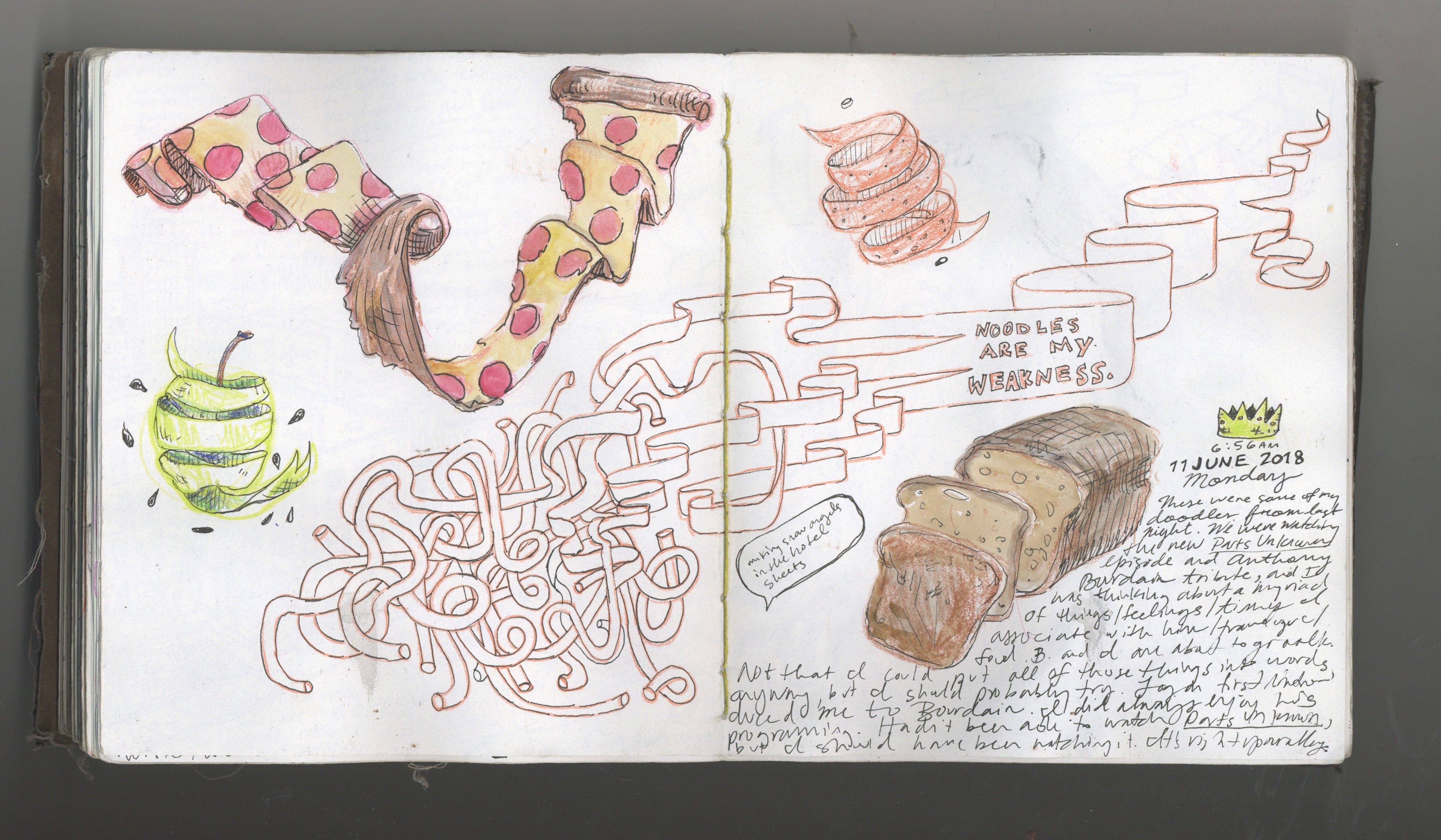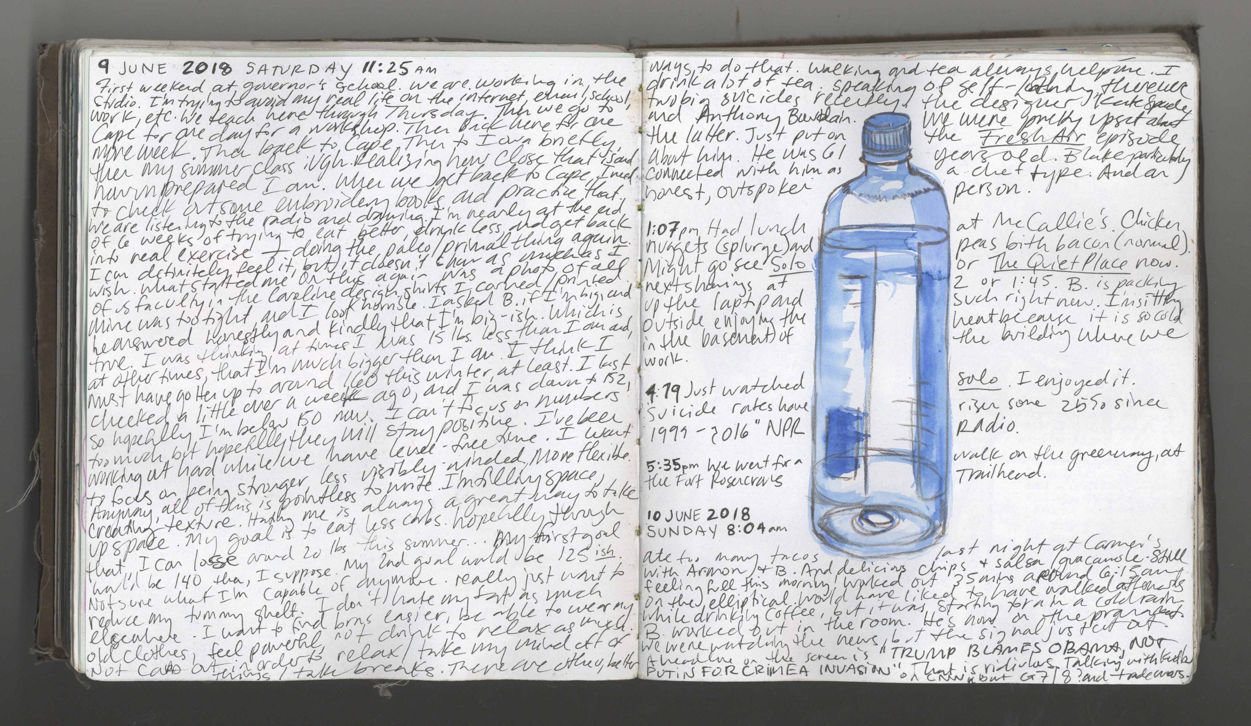 These scans are from a sketchbook from Summer of 2018.I believe all of these were created while I was in residence at Middle Tennessee State University, teaching a “sketchbook bootcamp” class with my partner, Blake, for Governor’s School. Gov School is a place for high school students gifted in the arts of music, film, art, etc. to come take classes on a college campus for the summer.