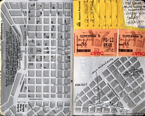 The little leather pouch I sewed in above image contains the key to the house I rented when Hurricane Katrina smashed into New Orleans in 2005.